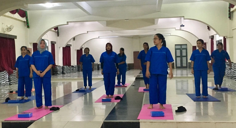 Am Ende des Tages führten die Studentinnen mir noch ihr speziell für die Klinik entwickeltes Schwangeren-Yoga-Programm vor, und wir machten anschließend noch zusammen den Labour-Dance, den eine der Studentinnen anleitete. Wir stopften uns dazu einen Yogaklotz unter die Klamotten, um den Bauch zu simulieren und schwangen die Hüften zu angesagter asiatischer Mucke. Leider hab ich kein Video davon.